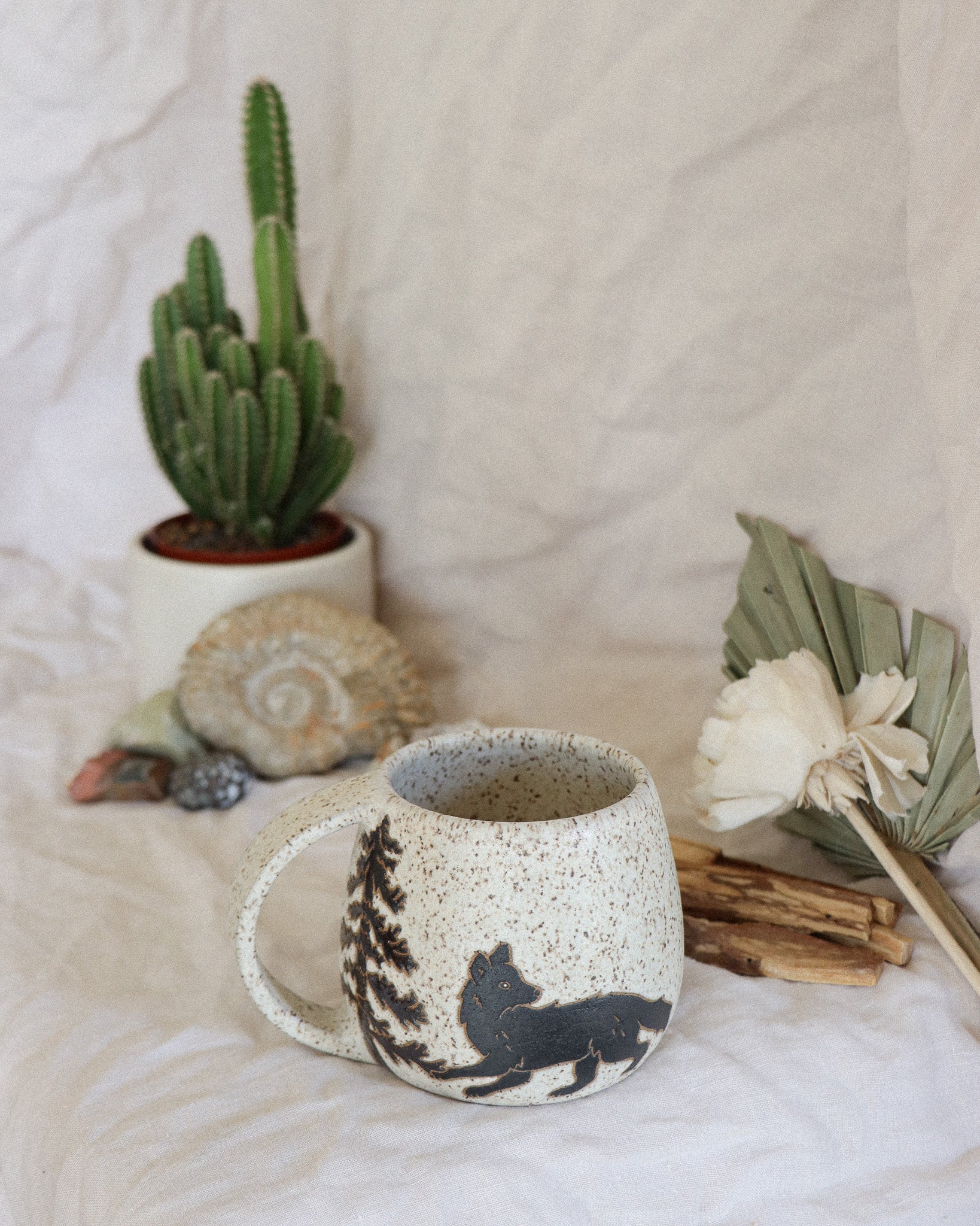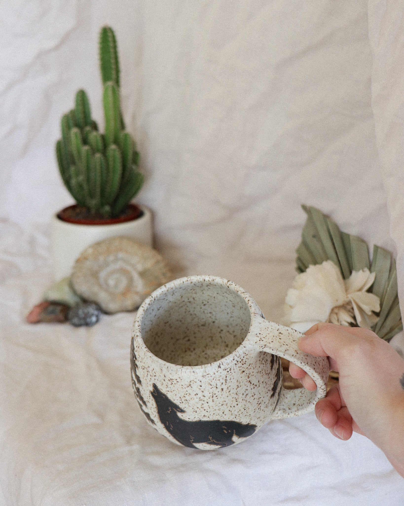 - Glazed with a white, food safe, non-toxic glaze that allows the speckles from within the clay to bleed through, creating the earthy speckled finish